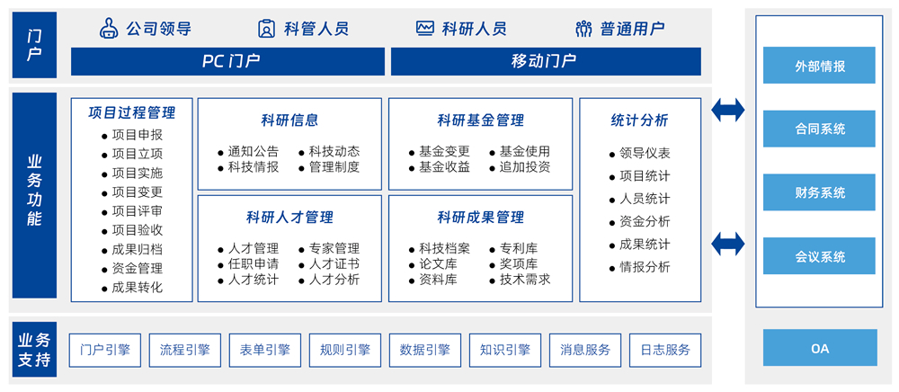 企業(yè)科研一體化管理平臺(tái),涵蓋科研項(xiàng)目全生命周期管理,能夠?qū)蒲行畔ⅰ⒖蒲谢鹦畔ⅰ⒖蒲腥瞬拧⒖蒲谐晒轿还芾恚?shí)現(xiàn)統(tǒng)計(jì)分析。可宏觀把控項(xiàng)目資金、資源分配;可實(shí)時(shí)查看科研項(xiàng)目核心業(yè)務(wù)數(shù)據(jù)報(bào)告并進(jìn)行深度分析;可實(shí)時(shí)監(jiān)控各個(gè)項(xiàng)目動(dòng)態(tài)。