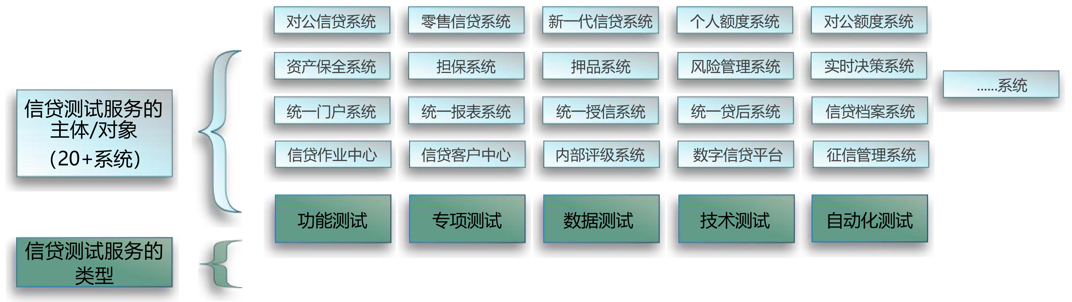 提供全面的測試服務,涵蓋新信貸、對公/零售信貸等20+信貸類系統(tǒng),以及功能、性能、數(shù)據(jù)、自動化等類型測試。