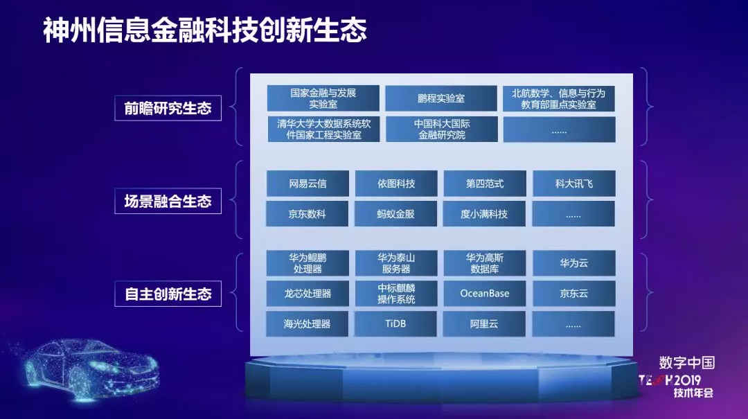 在生態(tài)創(chuàng)新方面,神州信息加強與生態(tài)伙伴的深度合作,共建生態(tài)。比如與擁有底層基礎(chǔ)軟硬件研究能力的華為、龍芯等企業(yè)打造自主創(chuàng)新生態(tài);與科大訊飛和BATJ等攜手打造場景融合生態(tài);并借助外腦,與國家金融與發(fā)展實驗室、鵬城實驗室、北航及清華大學(xué)等一系列院校、外研單位達成戰(zhàn)略合作,在前瞻研究方面開拓視野,構(gòu)建生態(tài)。